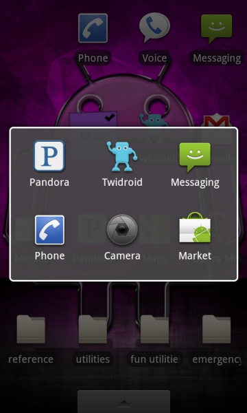 Another that I don’t recall seeing here: long-pressing the search button gives the voice search “Speak Now” app (at least in 2.1.)