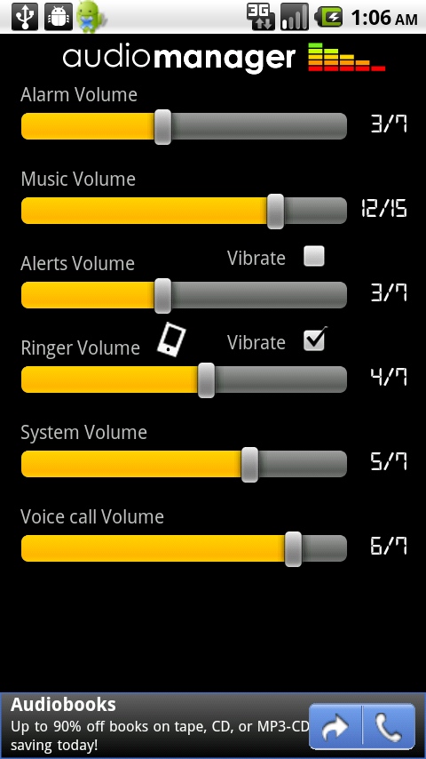 It always bothered me that there was no easy way to tell what the various volume levels were on my phone or set them easily, so I sought out some widgets to help me with that. As a disclaimer, I’ll say that I installed these apps months ago and there’s a possibility there are better ones in the Market now, but these have served their purpose well and I haven’t had any major problems with them.